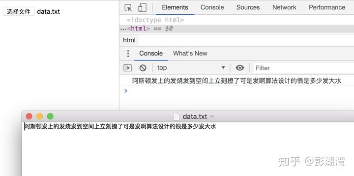 FileReader.readAsText(Blob):将Blob转化为文本字符串 FileReader.readAsArrayBuffer(Blob): 将Blob转为ArrayBuffer格式数据 FileReader.readAsDataURL(): 将Blob转化为Base64格式的Data URL 下面我们尝试把一个文件的内容通过字符串的方式读取出来